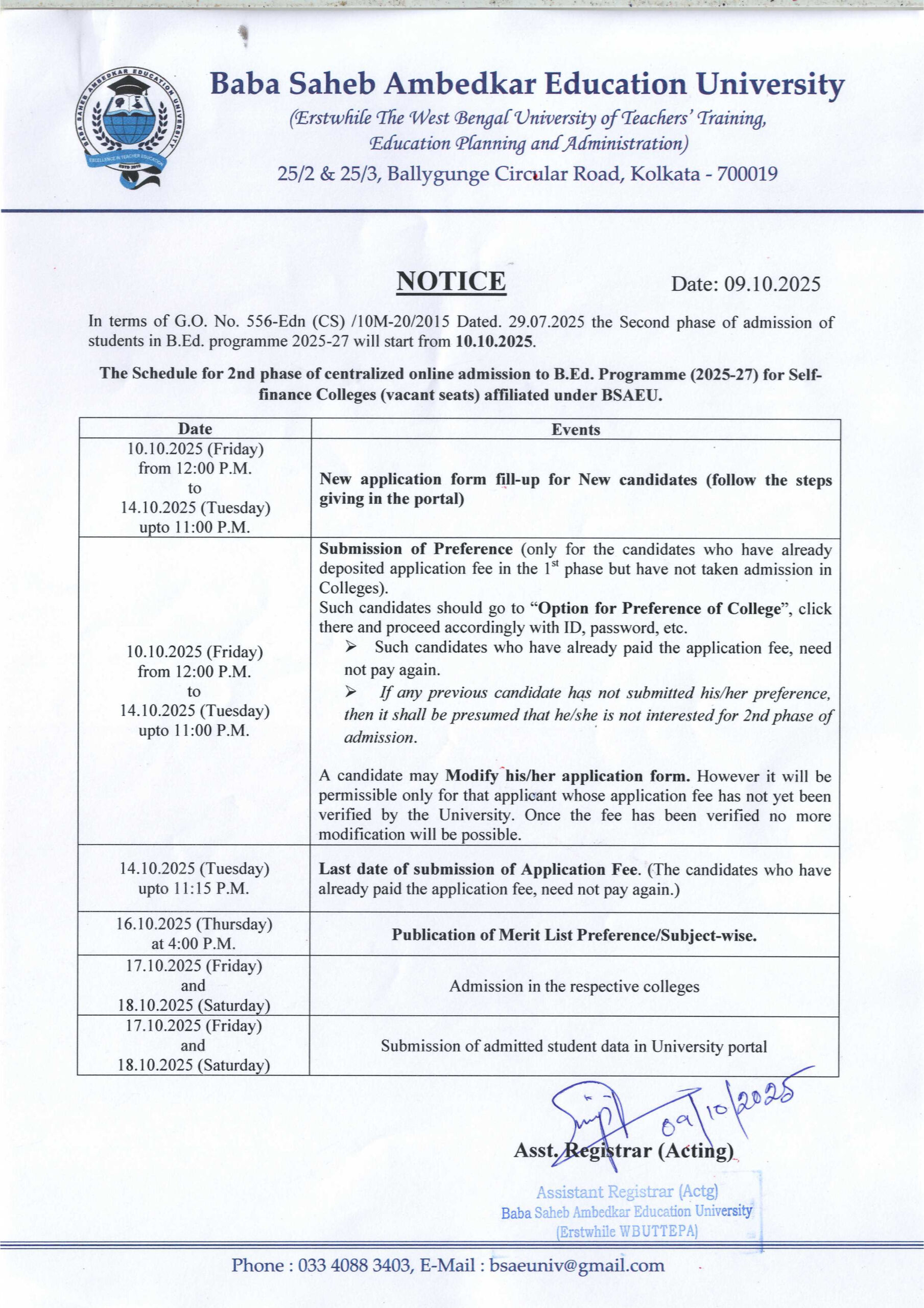Contact the office for Admission to the D.El.Ed. Course, Session 2024-26